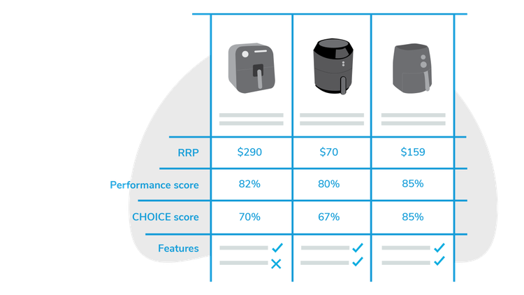 We give each air fryer a CHOICE score made up of: